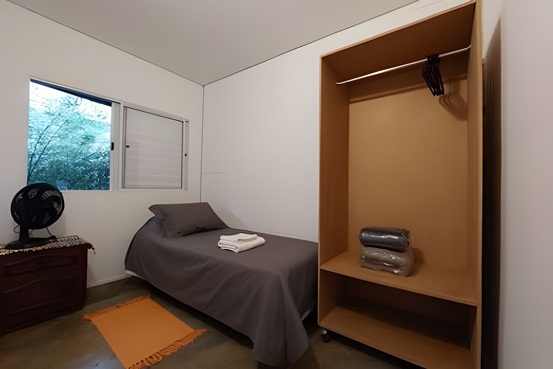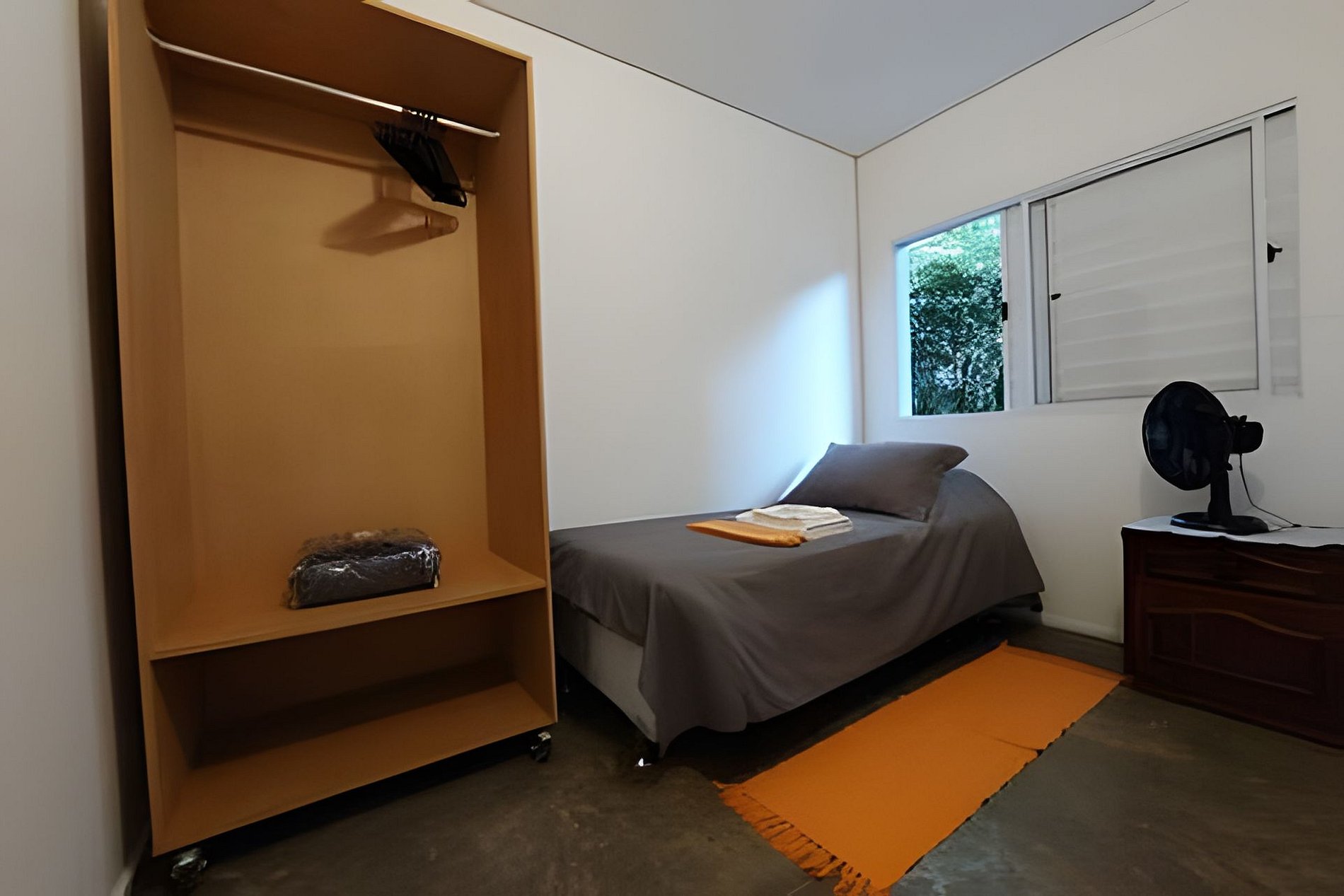 Quarto, banheiro, cozinha.
