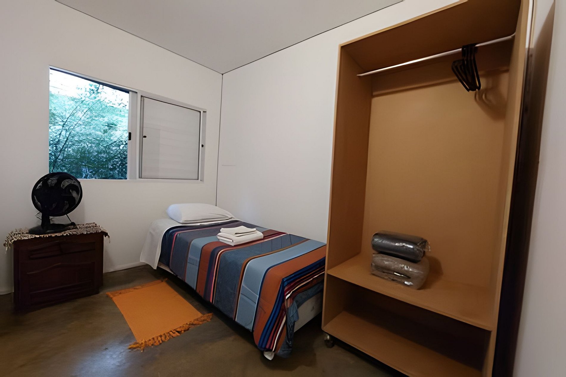 Quarto, banheiro, cozinha.