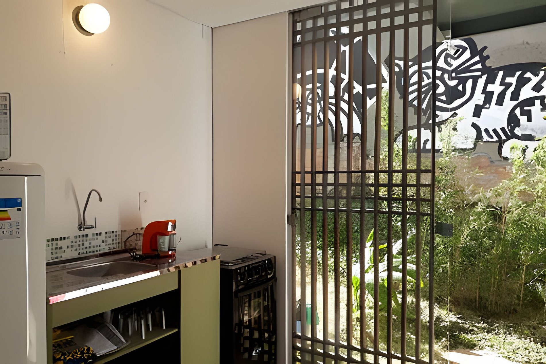 Vila Galeria, hospedando com arte. Este é 1 dos 16 apartamentos que compõem a Vila. Para até 2 hóspedes. O segundo hóspede modifica o valor. Self Checkout. Checkin aos Sábados, Domingos e feriados deverão ser combinados antes da reserva. Verifique em Regras da Casa se atendemos a todas as suas solicitações. Bem-Vindo! Arte interna Regis Annoni e Felipe David. Arte externa: Felipe Risada, Gleo, Enivo, Regis Annoni.
