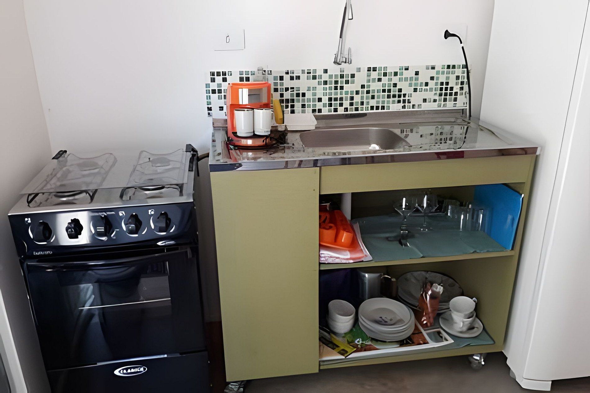 Quarto, banheiro, cozinha.
