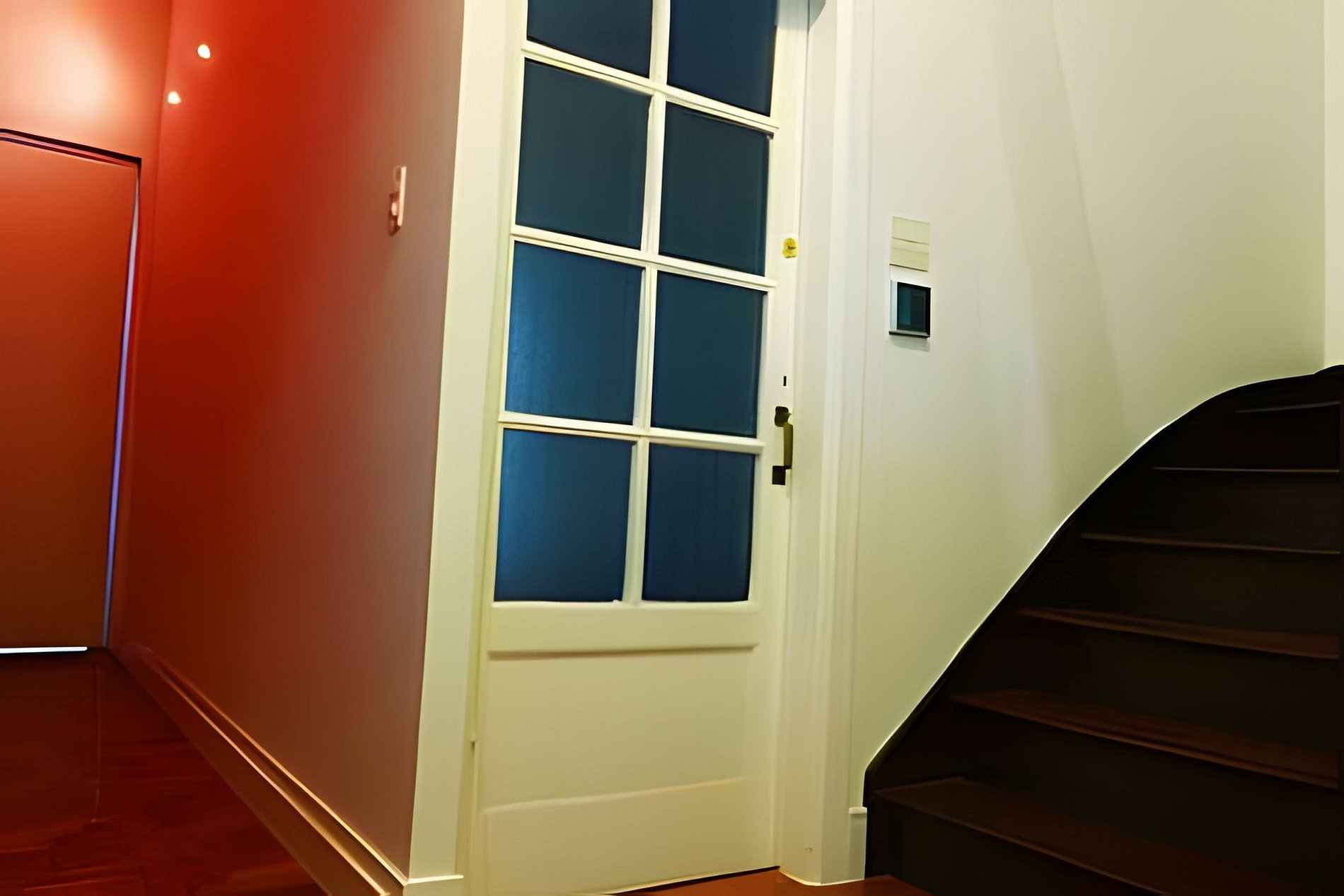Hall de entrada e escada são comuns a todos os Estúdios e residência dos anfitriões.
